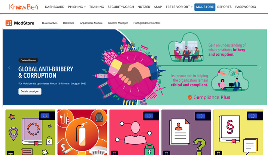 Das Compliance Plus Training von KnowBe4 ist von herausragender Qualität.