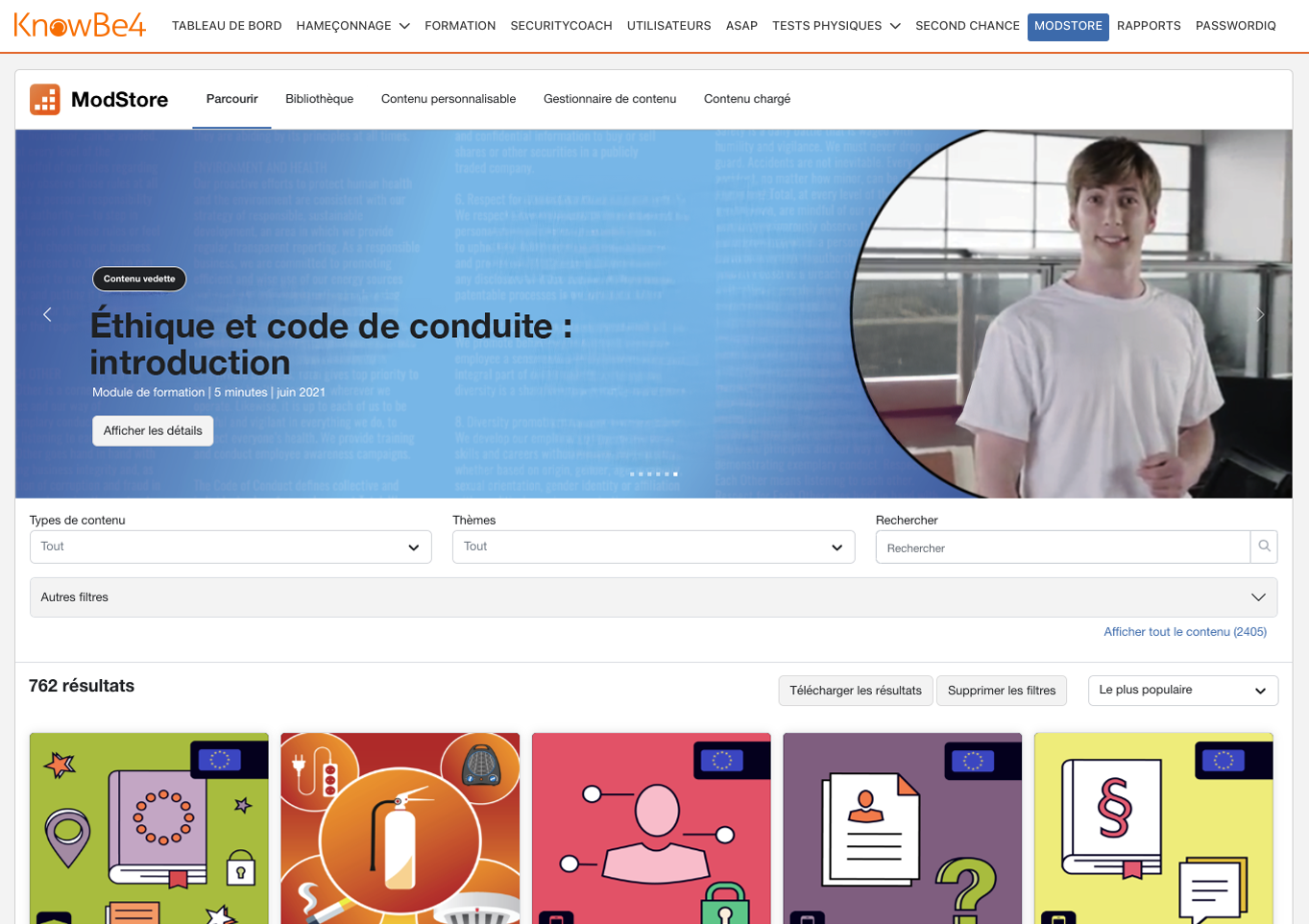 - Formation de vos utilisateurs avec accès à la plus grande bibliothèque du monde de contenus de formation sur la sensibilisation à la sécurité, constamment renouvelés.