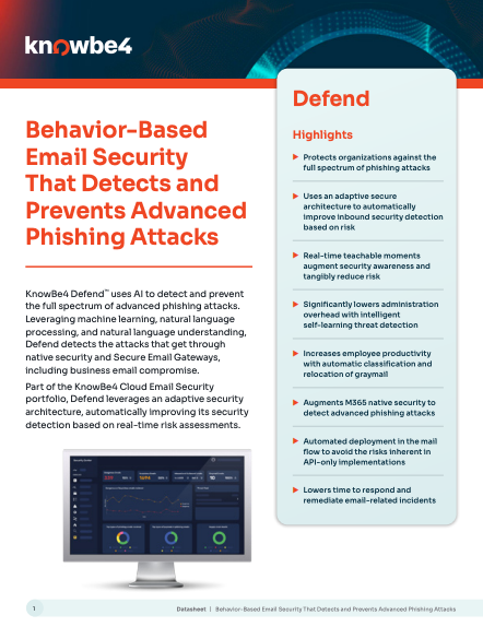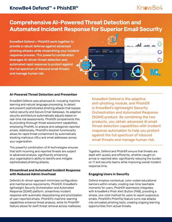 KnowBe4 protects your most vulnerable attack surface: humans. Discover how our end-to-end platform thwarts threats by weaving risk deterrence into everyone's workday:.