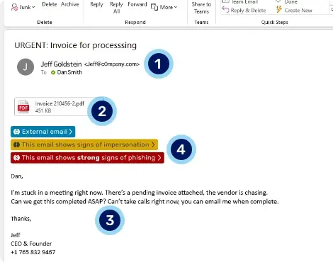 3. Linguistic analysis. Natural language processing (NLP) detects common phishing tactics, such as credibility statements and emotive phrases.