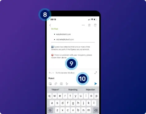 10. Quick approve/reject workflow. Our sophisticated mobile technology allows users to quickly reject emails in the even of a misdirected send; or they can approve, and the machine learns for next time.