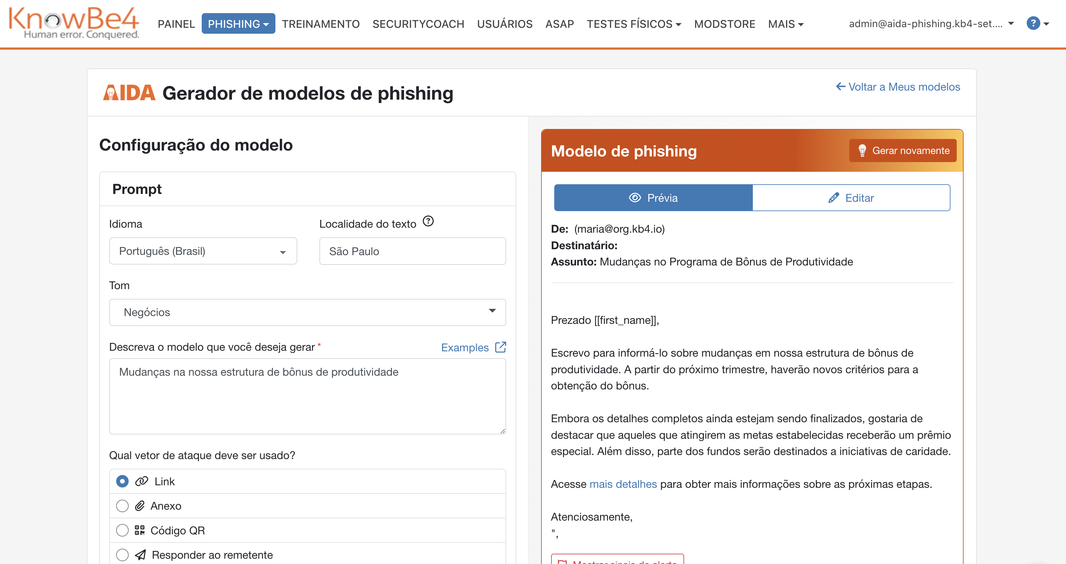 Cria modelos de phishing altamente realistas com base em vetores de ataque atuais
